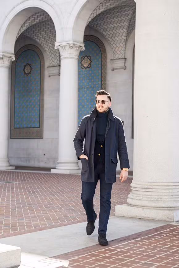 3.1. Traje oscuro + jersey fino + abrigo estructurado