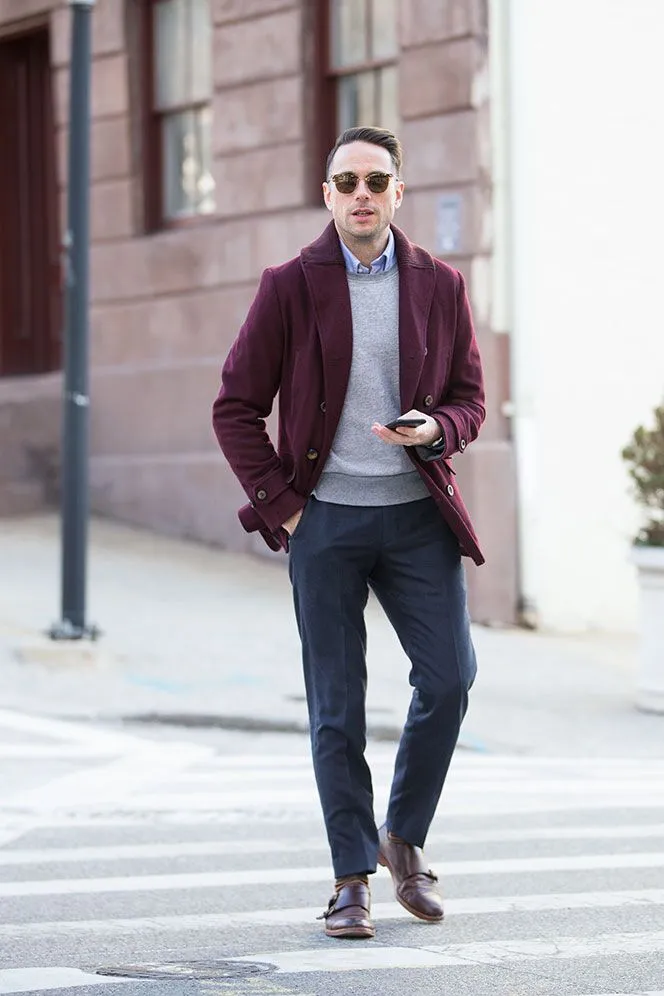 Stick to winter colors: green, burgundy, grey, navy, camel.